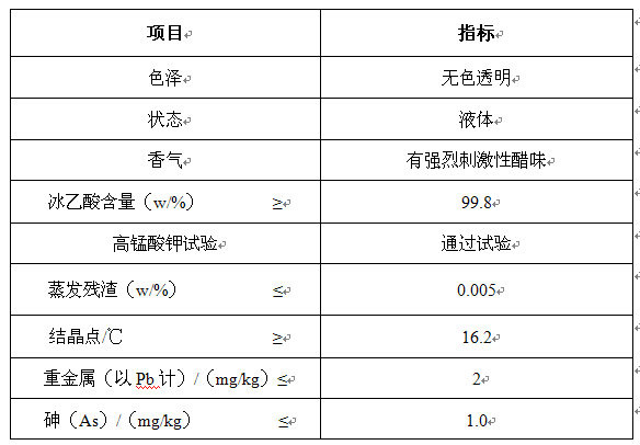冰乙酸在白酒中是重要的調味劑,一般含量在300-700mg/L,尤以濃香型白酒中含量高。在白酒總酸中將近50%,適量加入白酒可使酒體柔和、回味悠長、口感爽凈,是白酒中不可缺少、重要的酸味劑。